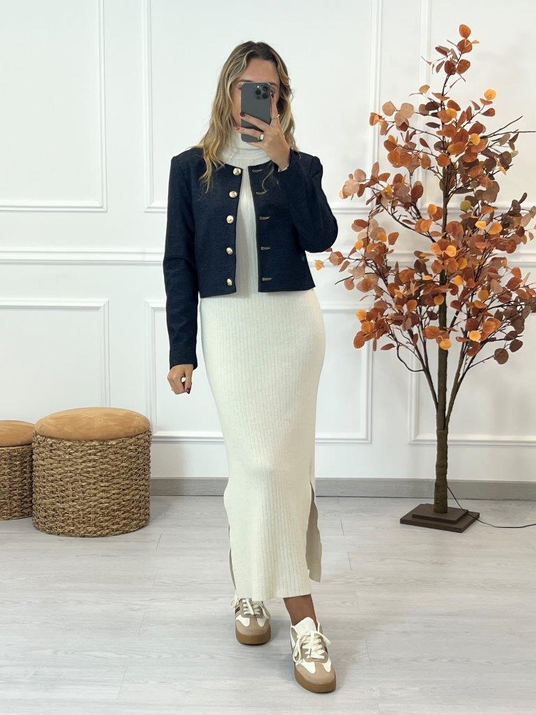Casaca de qualidade superior, em ganga fina e maleável.