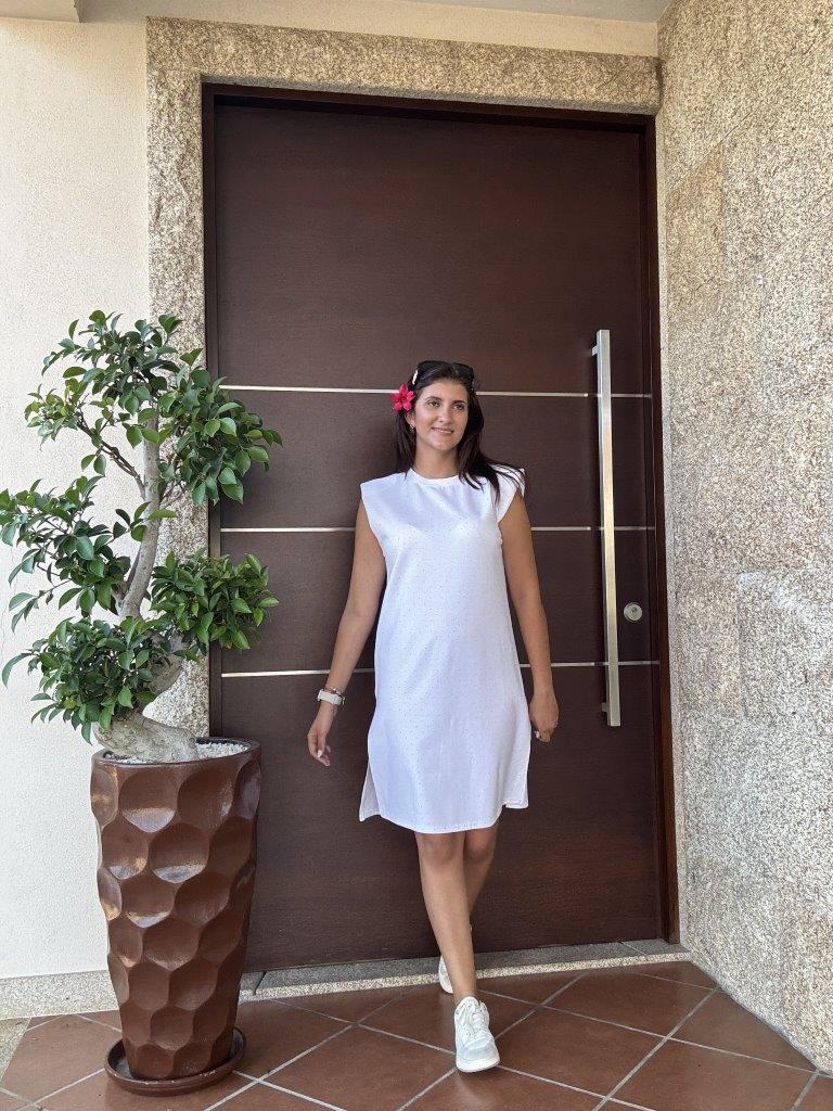 Vestido com racha bilateral, todo estampado com brilhantes e com mala incluida. Veste do S ao L.